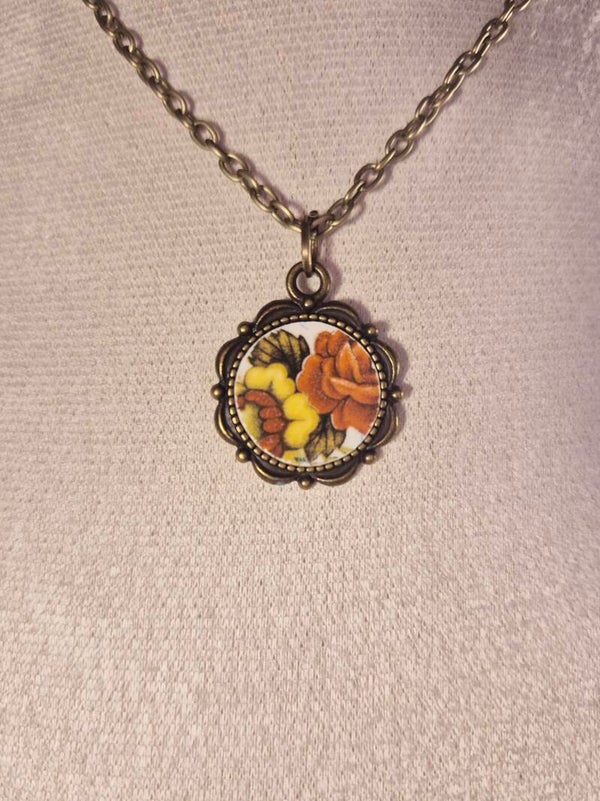 Ce collier fait main est fabriqué à partir d’un morceau d’assiette ancienne, unique et plein d’histoire. Chaque pendentif conserve les motifs originaux de l’assiette, créant un bijou simple, élégant et chargé de caractère. Une pièce originale qui ajoute une touche vintage à votre style.