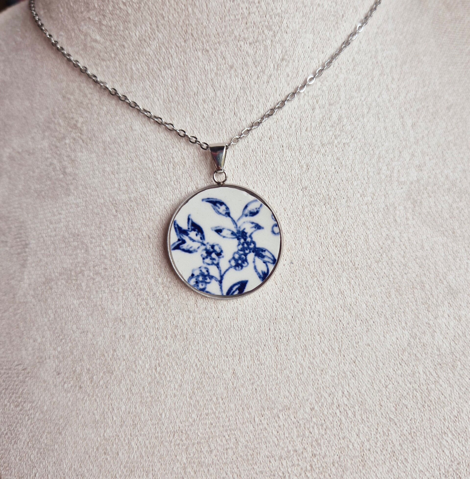 Pendentif unique réalisé à partir d'une assiette ancienne