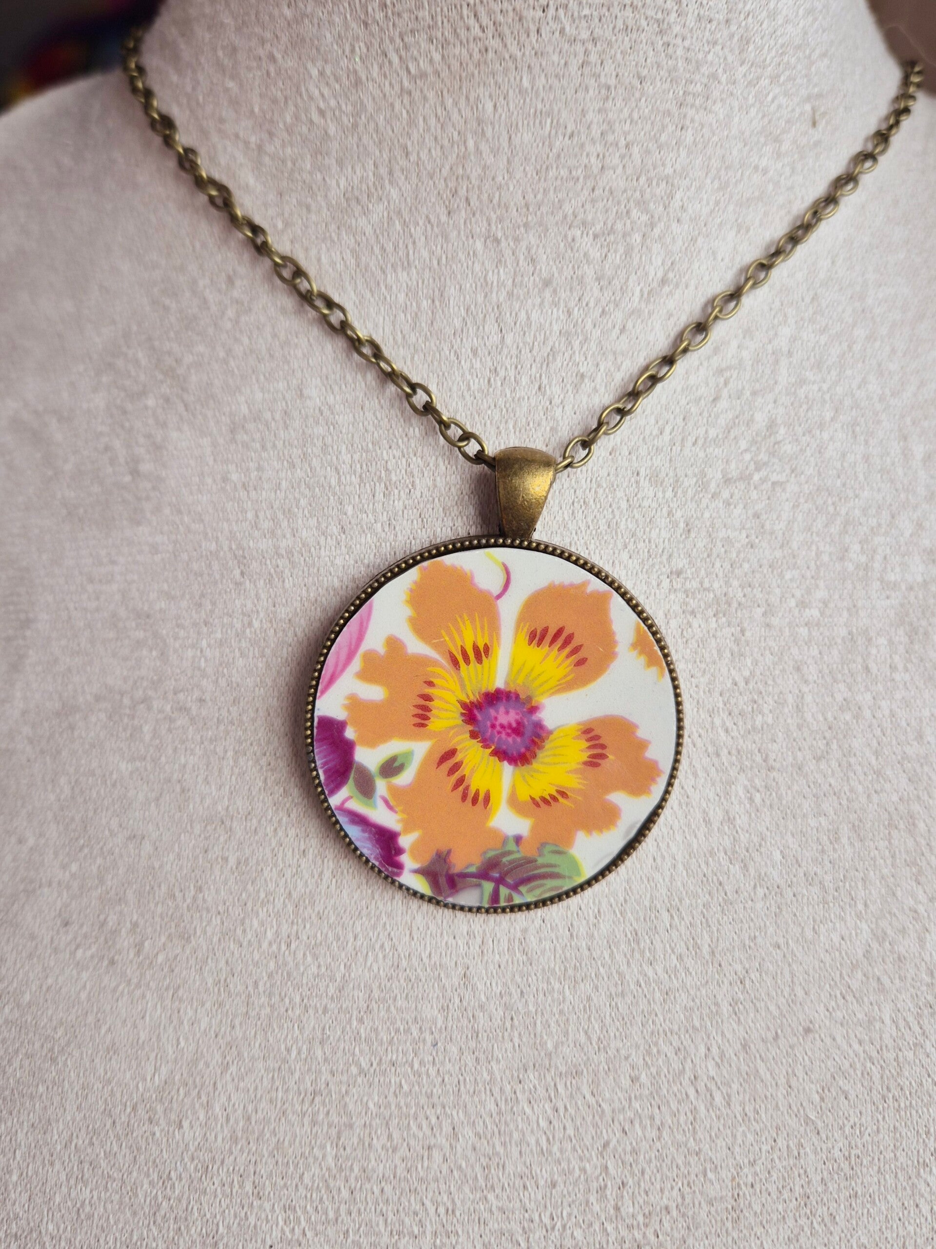 Pendentif unique réalisé à partir d'une assiette ancienne
