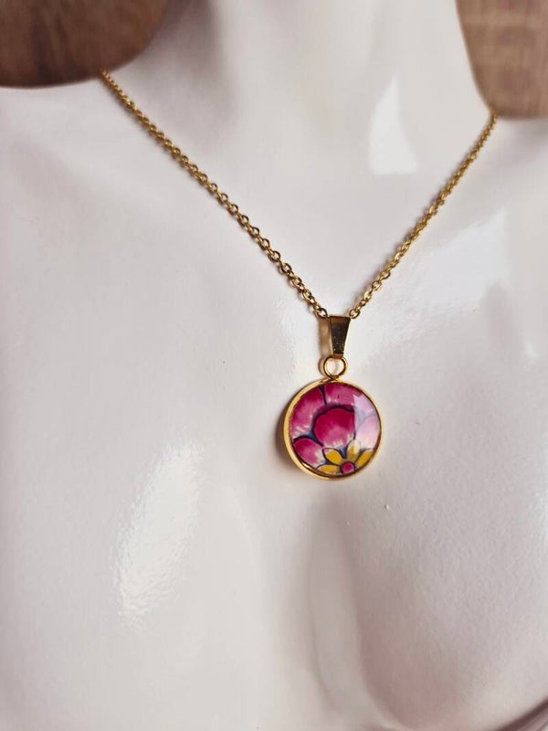 Ce collier artisanal est réalisé à partir d’un éclat d’assiette ancienne, soigneusement transformé en un pendentif unique, chargé d’histoire. Chaque pièce préserve les motifs d’origine de la porcelaine, donnant naissance à un bijou à la fois délicat, élégant et authentique. Une création originale qui apporte une subtile touche vintage à votre look.