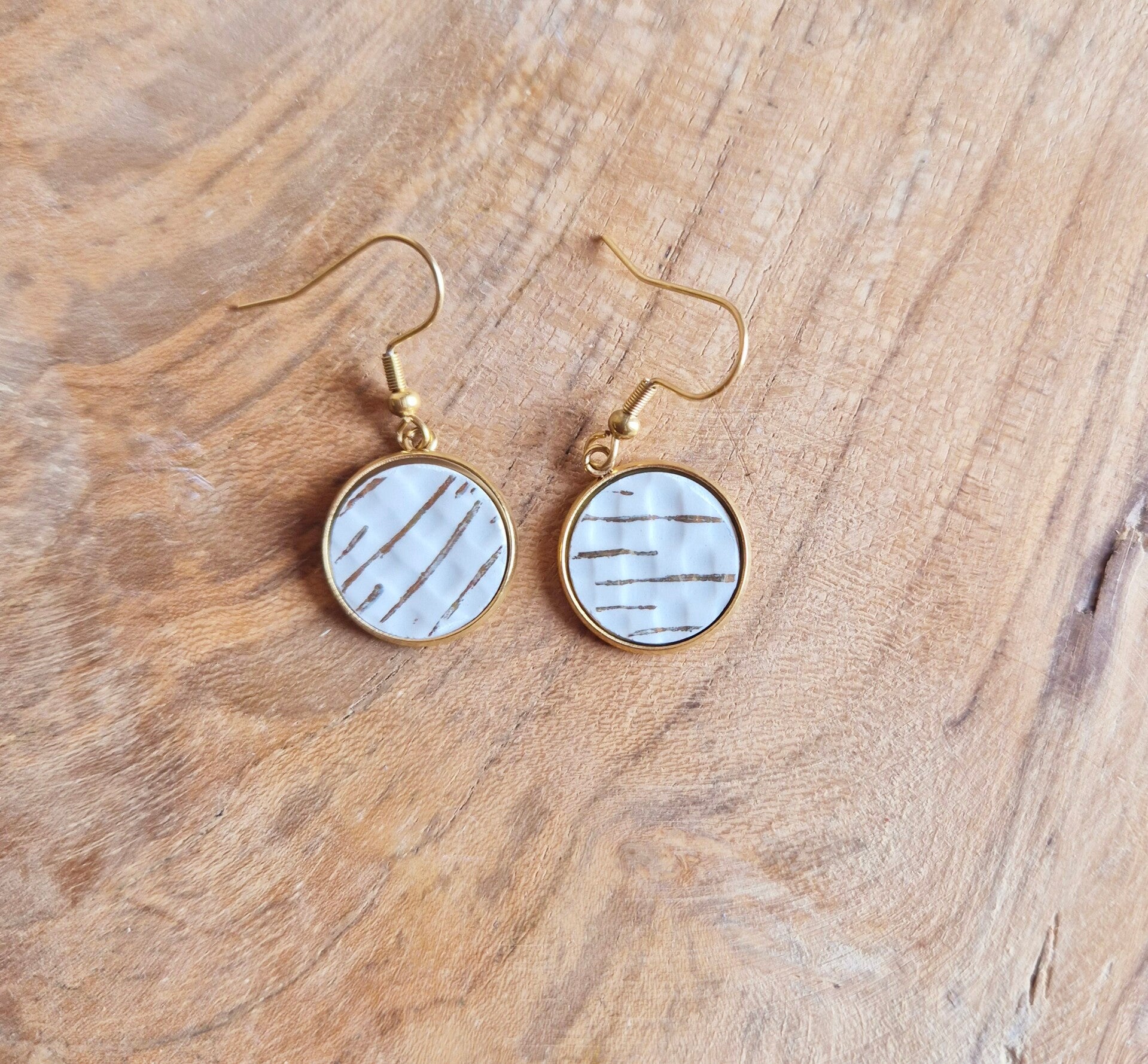Boucles d'oreilles crées à partir d'une assiette ancienne