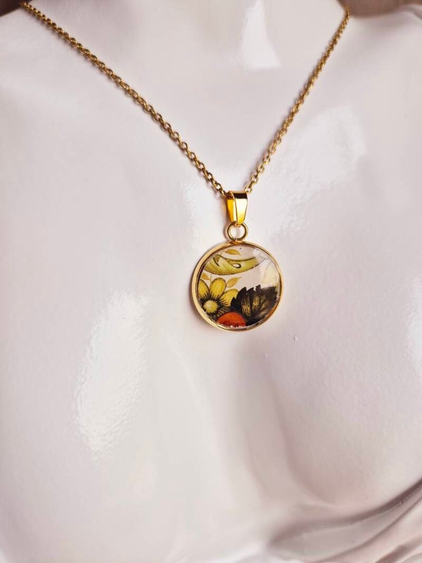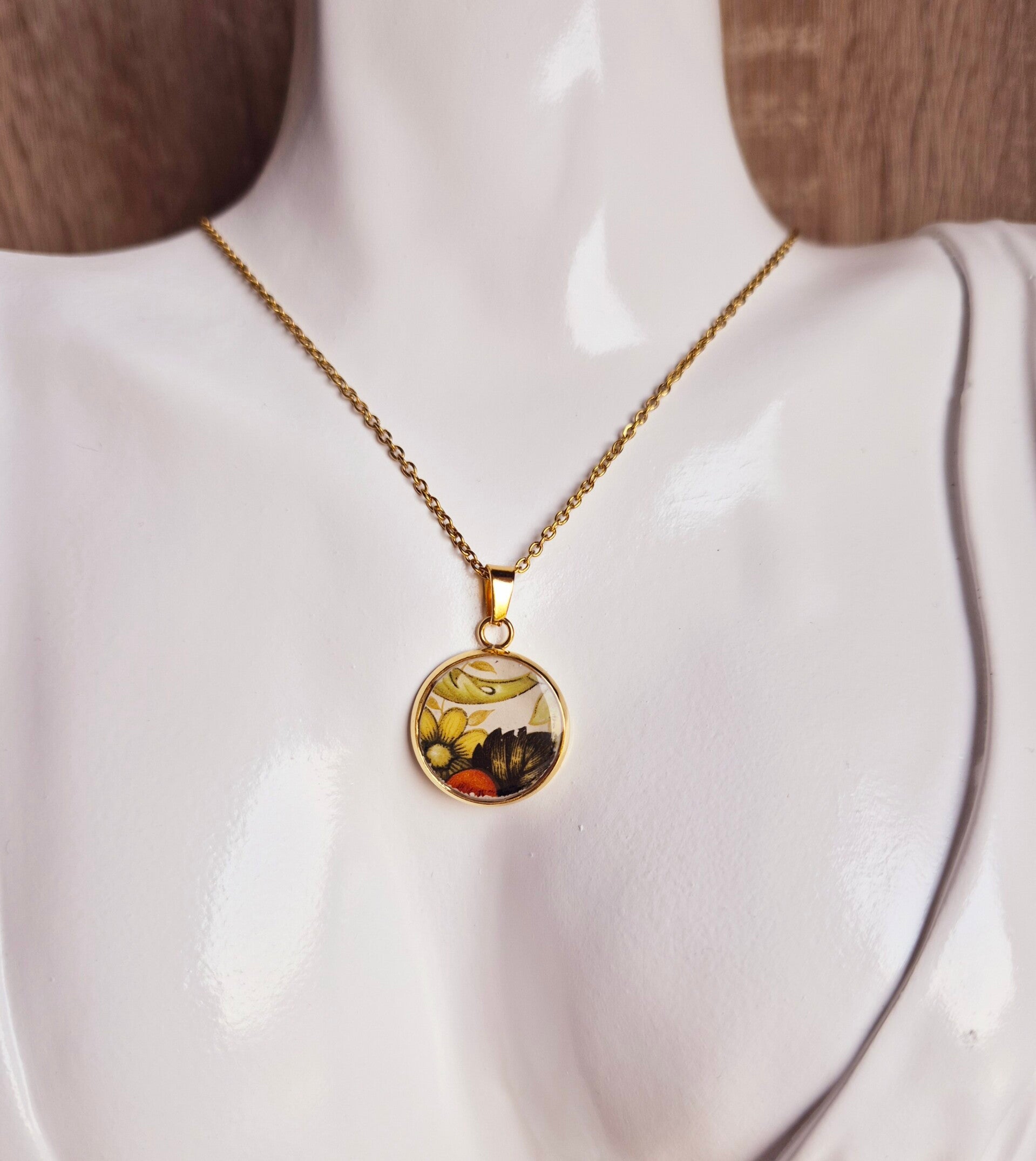 Pendentif unique réalisé à partir d'une assiette ancienne