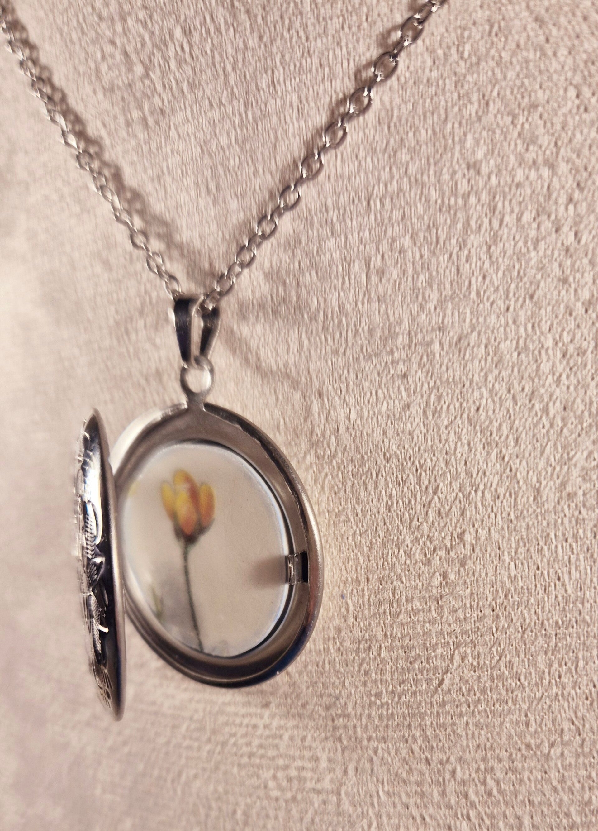 Le médaillon s’ouvre délicatement : dans la partie droite, vous pouvez insérer une photo ou un souvenir précieux.